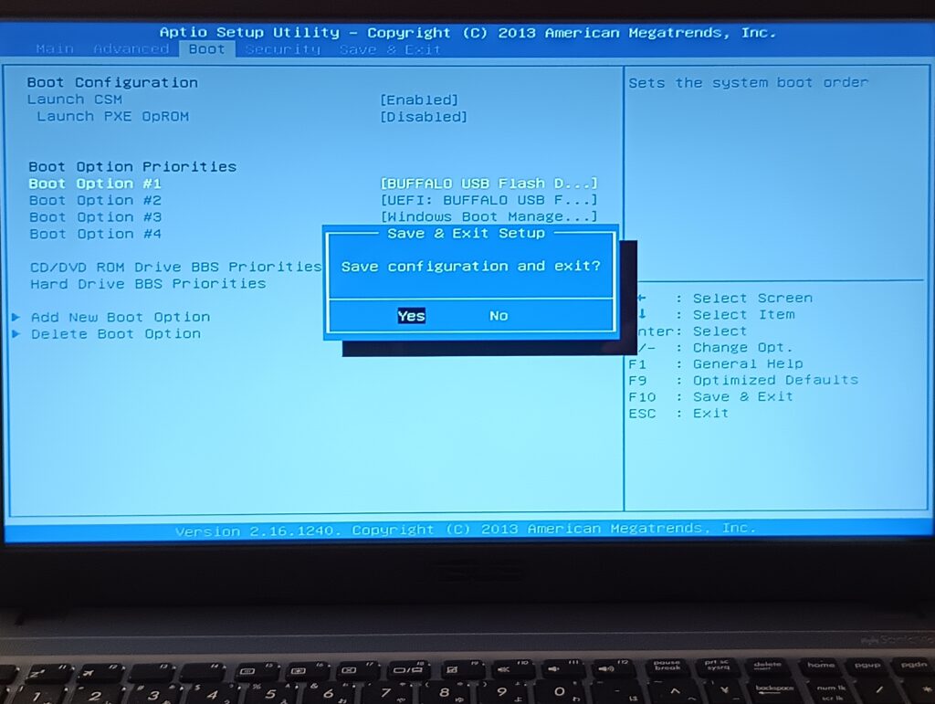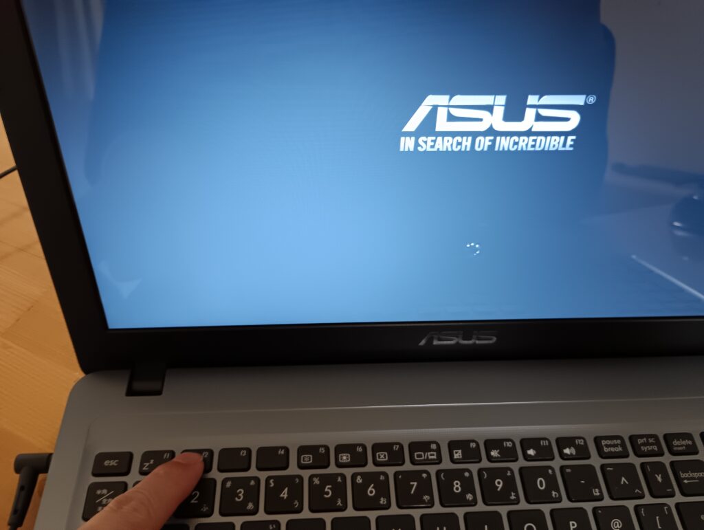 1.古いPCにUSBメモリを挿入し、電源を入れたら、すぐに「Escキー」または「F2キー」を連打!
