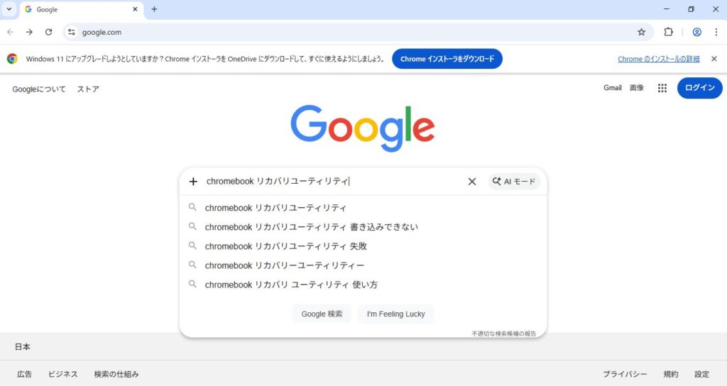1.Chromeブラウザで「Chromebookリカバリユーティリティ」を検索して、インストールします。